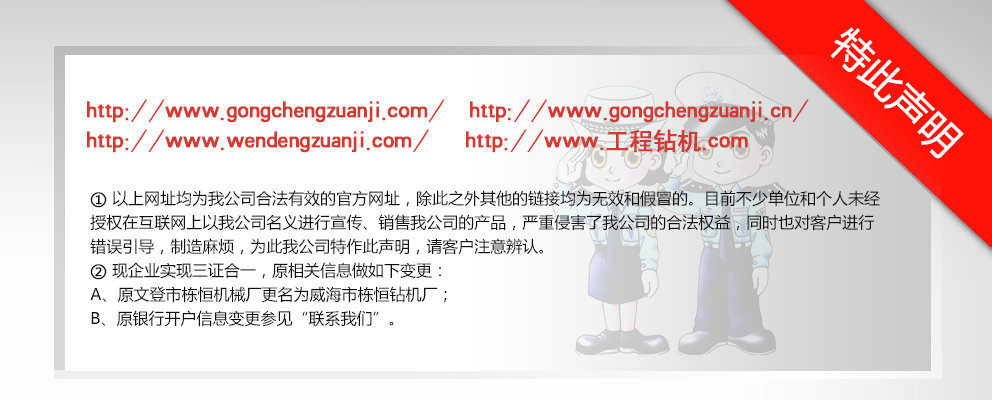 威海市棟恒鉆機(jī)廠隸屬于文登市工程鉆機(jī)廠,主要生產(chǎn)、銷(xiāo)售工程鉆機(jī)。它坐落于文登市西鋪頭工業(yè)園,這里科技發(fā)達(dá),交通便利,制造業(yè)集中。 自1982年建廠以來(lái),經(jīng)過(guò)多年的優(yōu)化改革和沉淀積累,擁有精密、大型加工設(shè)備近百臺(tái)的生產(chǎn)企業(yè)之一。現(xiàn)在研制成功的GJ-400、GJ-250S、GJ-250A、GJ-240S、GJ-240A、GJ-180S、GJ-180A型等鉆機(jī)。在其它產(chǎn)品上,企業(yè)建立了長(zhǎng)期、中期、短期的發(fā)展規(guī)劃,一系列的高性能產(chǎn)品正在不斷推出中,企業(yè)應(yīng)市場(chǎng)需求對(duì)系列產(chǎn)品進(jìn)行了優(yōu)化組合,開(kāi)發(fā)了與之對(duì)應(yīng)配套的三腿、四腿單天車(chē)輪、雙天車(chē)輪鉆塔;泥漿泵—BW-160Q、BW- 200Q型球形閥泥漿泵大大提高了泵的使用性能和機(jī)械效率